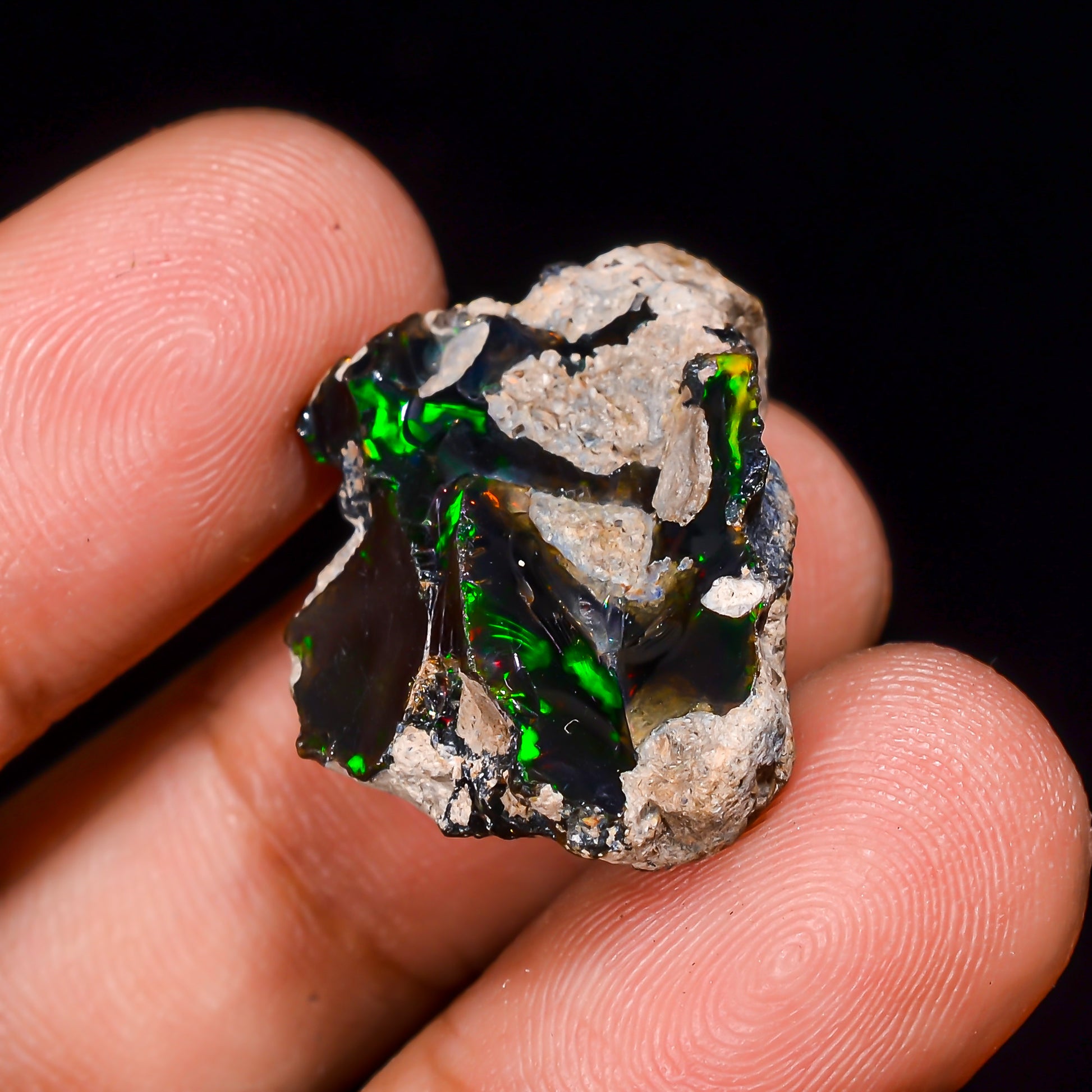 Black Opal 15.5 Carats | Natural Black Ethiopian Opal Rough - Ready for Cutting & Jewelry