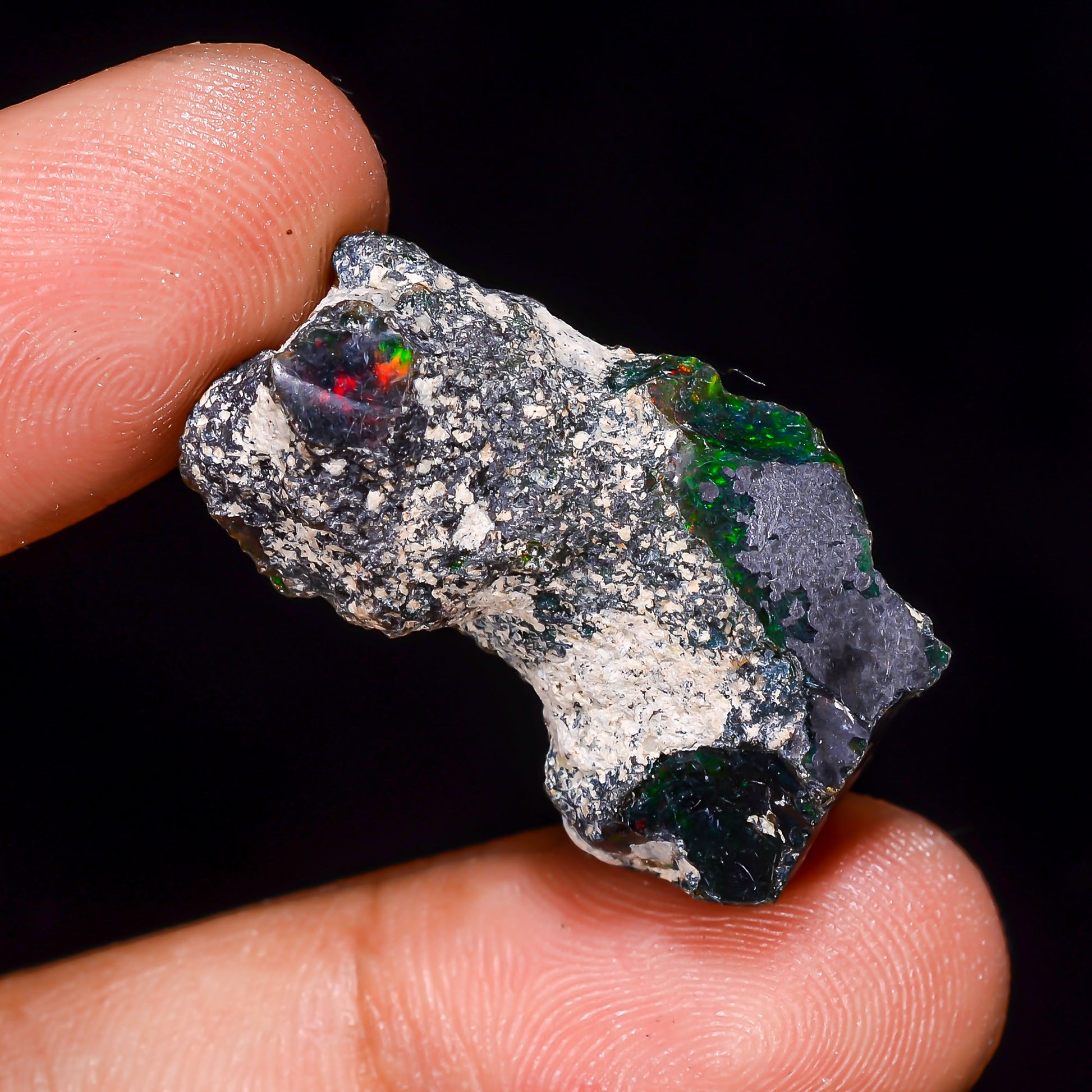 Intense Multi-Fire Play of Color: Prepare to be captivated by the dazzling flashes of fiery reds, brilliant greens, electric blues, and golden oranges dancing across its rough surface. The dark background makes the spectral colors pop with stunning contrast.