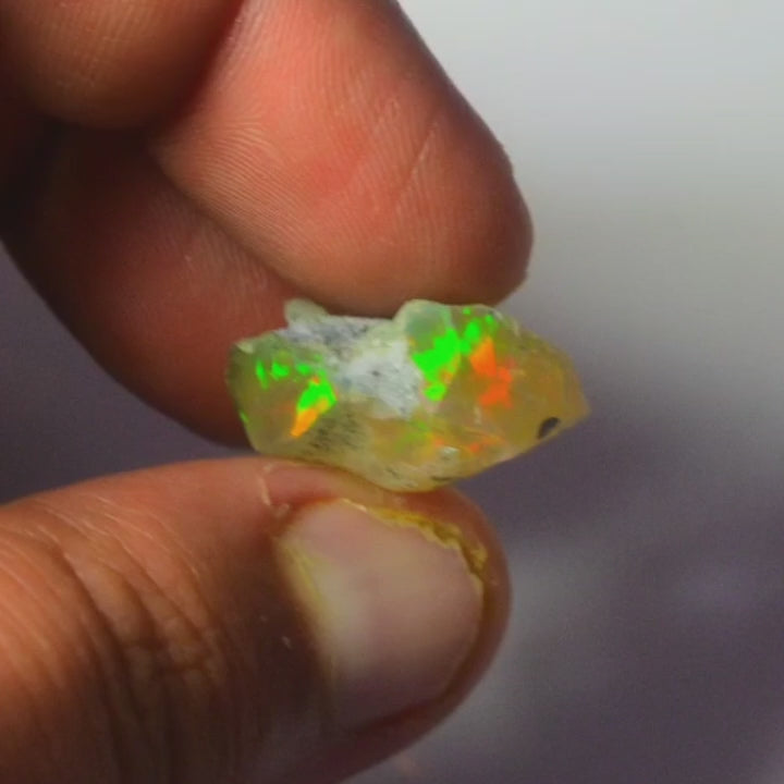 Professionally Smoked for Enhanced Color: To achieve its desirable black body color, this opal has undergone a "smoking" treatment. This is a standard and widely accepted practice for enhancing the body tone of Ethiopian opals, intensifying the contrast and making the play of color more vivid. This treatment permanently darkens the body color and does not affect the opal's inherent fire, durability, or stability.