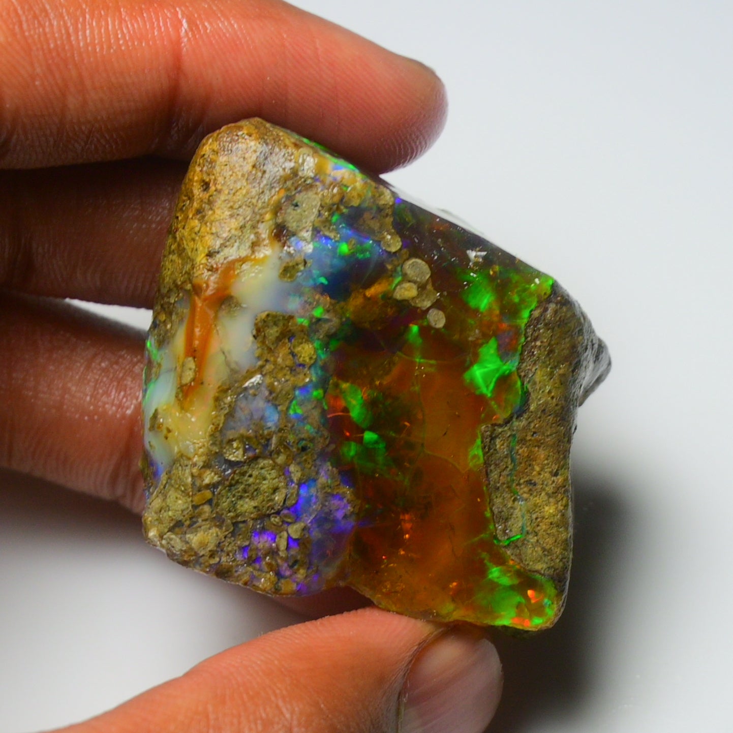 We are thrilled to present this magnificent Large Carat 148.00 Multi-Fire Natural Ethiopian Welo Opal ROUGH SPECIMEN for direct purchase! Sourced directly from the famous Welo mines of Ethiopia, this substantial piece is a captivating natural wonder, perfectly suited for the discerning collector, mineral enthusiast, or as a stunning display piece