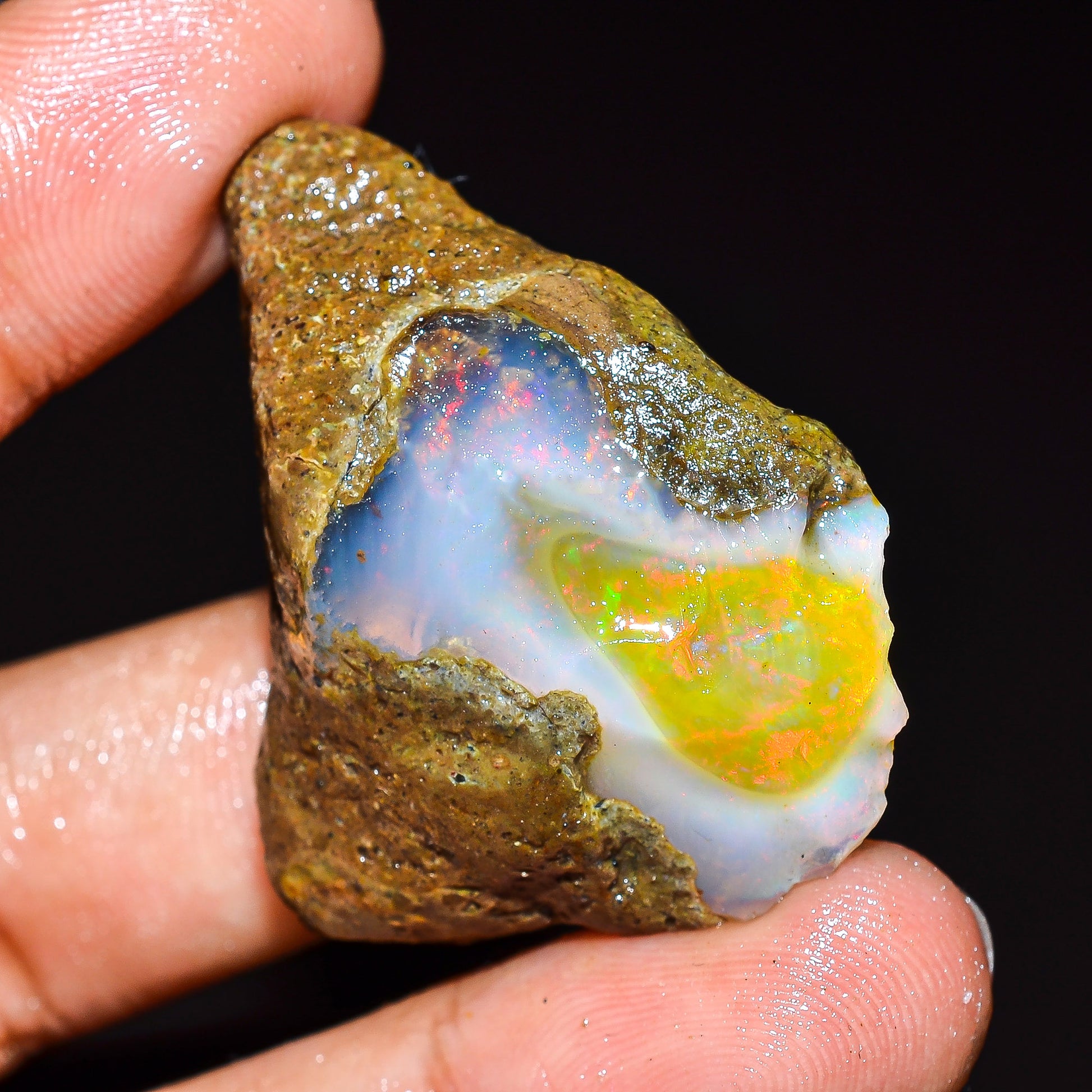 We are thrilled to present this magnificent Large 45.00 Carat Multi-Fire Natural Ethiopian Welo Opal ROUGH SPECIMEN for direct purchase! Sourced directly from the famous Welo mines of Ethiopia, this substantial piece is a captivating natural wonder, perfectly suited for the discerning collector, mineral enthusiast, or as a stunning display piece