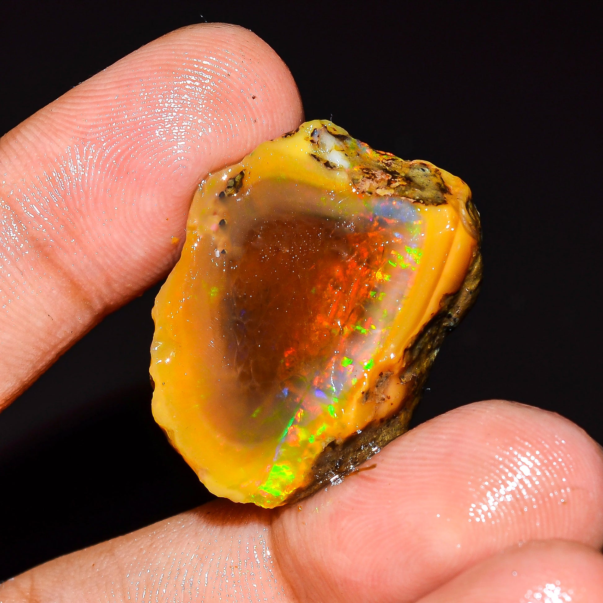 We are thrilled to present this magnificent Large 35.5 Carat Multi-Fire Natural Ethiopian Welo Opal ROUGH SPECIMEN for direct purchase! Sourced directly from the famous Welo mines of Ethiopia, this substantial piece is a captivating natural wonder, perfectly suited for the discerning collector, mineral enthusiast, or as a stunning display piece