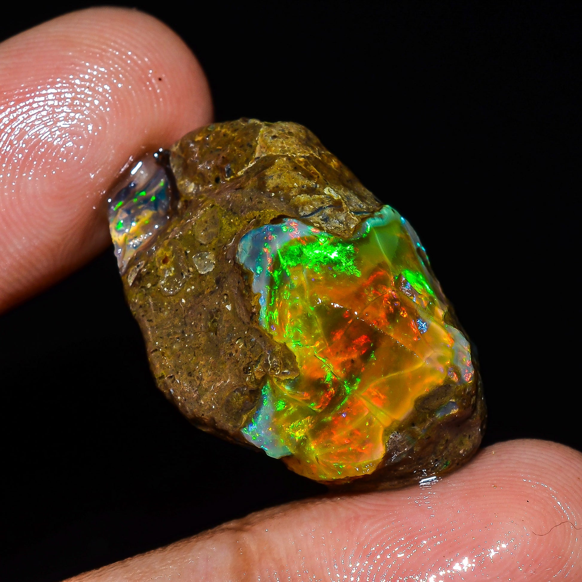 We are thrilled to present this magnificent Large 11.00 Carat Multi-Fire Natural Ethiopian Welo Opal ROUGH SPECIMEN for direct purchase! Sourced directly from the famous Welo mines of Ethiopia, this substantial piece is a captivating natural wonder, perfectly suited for the discerning collector, mineral enthusiast, or as a stunning display piece