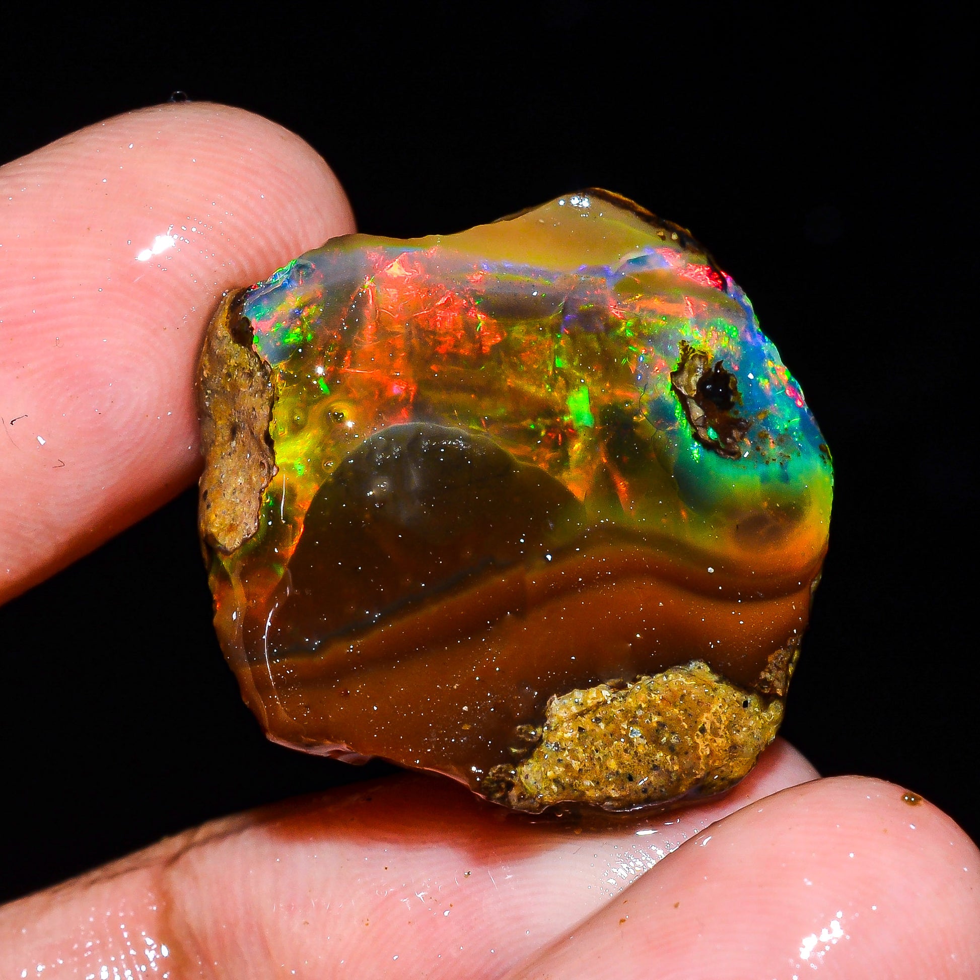 We are thrilled to present this magnificent Large 25.00 Carat Multi-Fire Natural Ethiopian Welo Opal ROUGH SPECIMEN for direct purchase! Sourced directly from the famous Welo mines of Ethiopia, this substantial piece is a captivating natural wonder, perfectly suited for the discerning collector, mineral enthusiast, or as a stunning display piece
