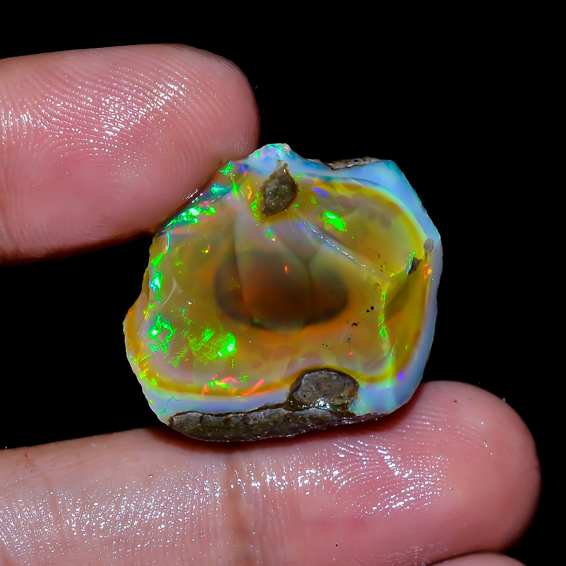 We are thrilled to present this magnificent Large 29.5 Carat Multi-Fire Natural Ethiopian Welo Opal ROUGH SPECIMEN for direct purchase! Sourced directly from the famous Welo mines of Ethiopia, this substantial piece is a captivating natural wonder, perfectly suited for the discerning collector, mineral enthusiast, or as a stunning display piece