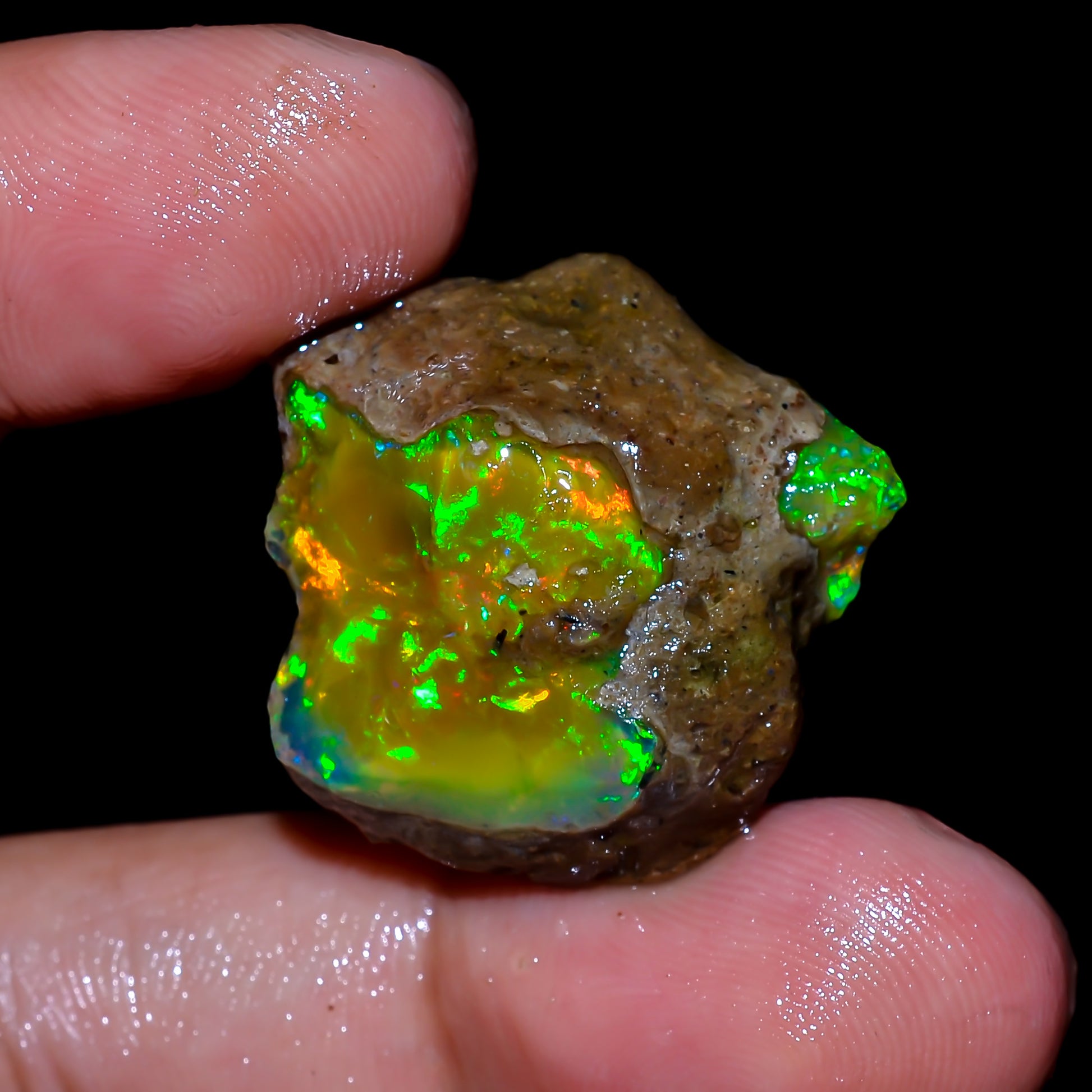 We are thrilled to present this magnificent Large 26.5 Carat Multi-Fire Natural Ethiopian Welo Opal ROUGH SPECIMEN for direct purchase! Sourced directly from the famous Welo mines of Ethiopia, this substantial piece is a captivating natural wonder, perfectly suited for the discerning collector, mineral enthusiast, or as a stunning display piece