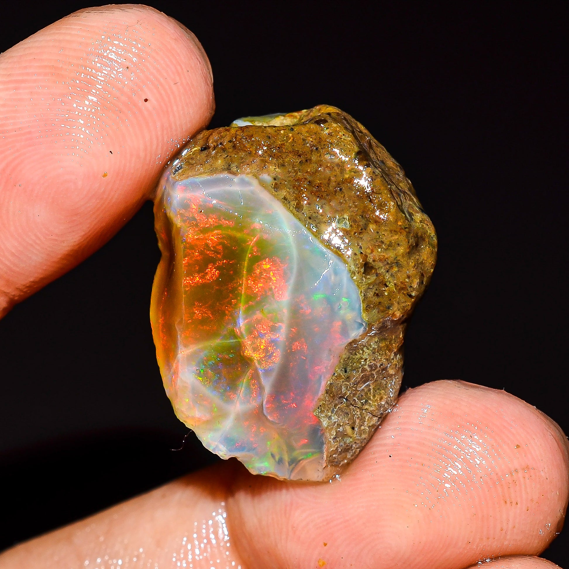 We are thrilled to present this magnificent Large 27.00 Carat Multi-Fire Natural Ethiopian Welo Opal ROUGH SPECIMEN for direct purchase! Sourced directly from the famous Welo mines of Ethiopia, this substantial piece is a captivating natural wonder, perfectly suited for the discerning collector, mineral enthusiast, or as a stunning display piece