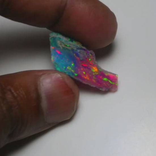 "Behold the mesmerizing depths of this Very High Quality Natural Bio Color Ethiopian Opal Rough! This exceptional Welo opal boasts a deep, naturally enhanced dark body tone that serves as the perfect canvas for an incredible intensity of multi-fire play of color, truly making it a standout gem, just as it was unearthed."