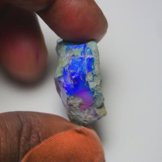 "Behold the mesmerizing depths of this Very High Quality Natural Bio Color Ethiopian Opal Rough! This exceptional Welo opal boasts a deep, naturally enhanced dark body tone that serves as the perfect canvas for an incredible intensity of multi-fire play of color, truly making it a standout gem, just as it was unearthed."