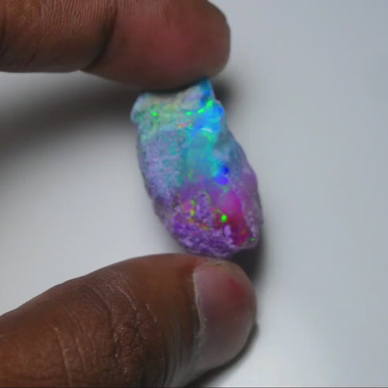 "Behold the mesmerizing depths of this Very High Quality Natural Bio Color Ethiopian Opal Rough! This exceptional Welo opal boasts a deep, naturally enhanced dark body tone that serves as the perfect canvas for an incredible intensity of multi-fire play of color, truly making it a standout gem, just as it was unearthed."