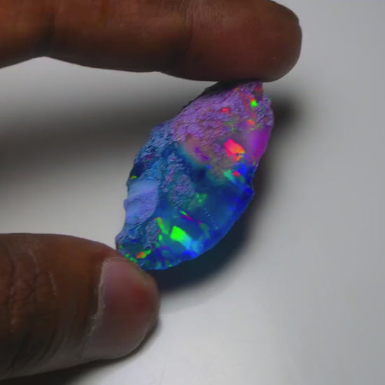 "Behold the mesmerizing depths of this Very High Quality Natural Bio Color Ethiopian Opal Rough! This exceptional Welo opal boasts a deep, naturally enhanced dark body tone that serves as the perfect canvas for an incredible intensity of multi-fire play of color, truly making it a standout gem, just as it was unearthed."